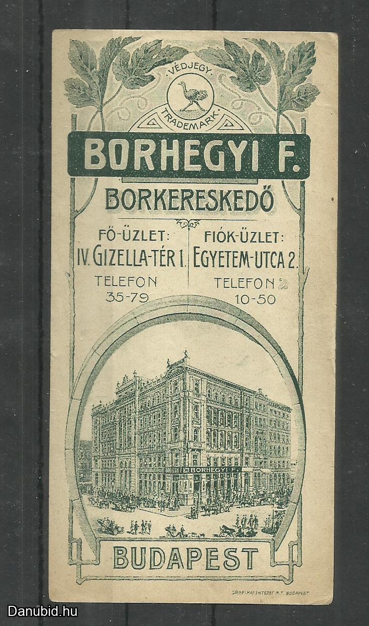 1920.- 1 db számolócédula - Borhegyi F. - Borkereskeddő