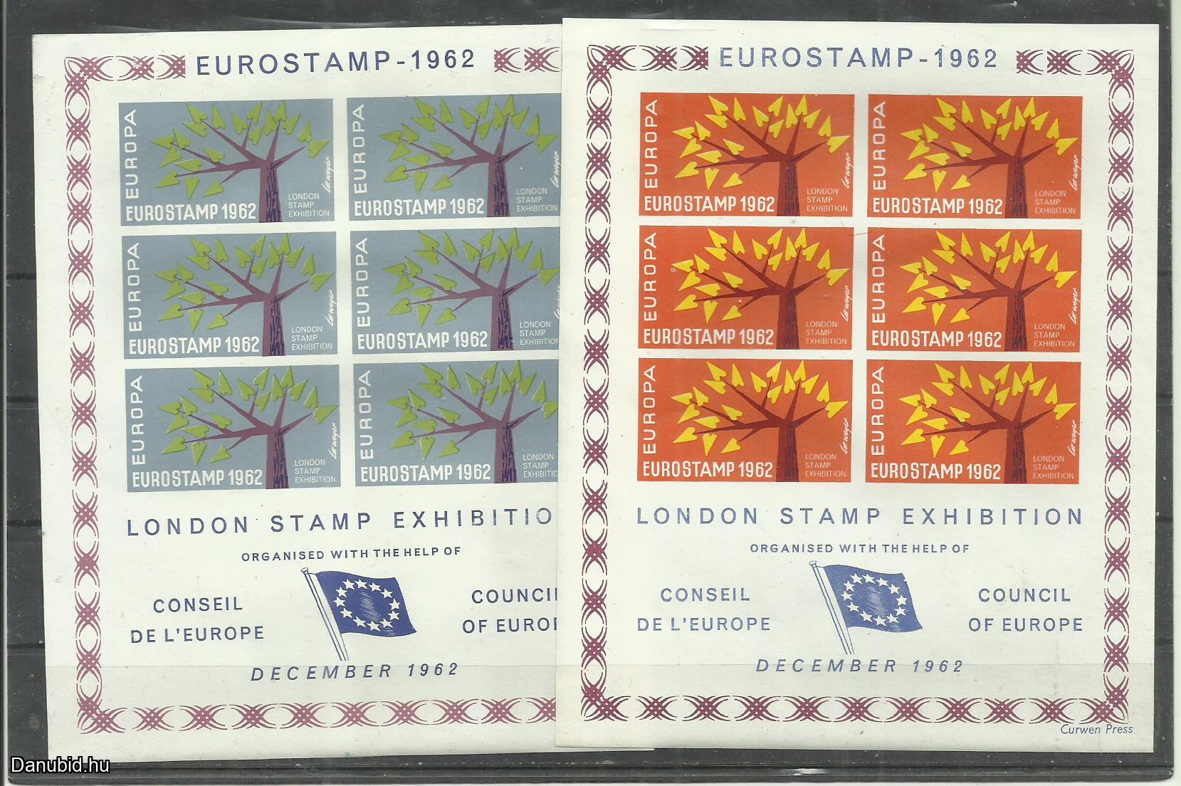 1962.- Anglia -GB - UK Eurostamp London bélyegkiállítás emlékív x 2
