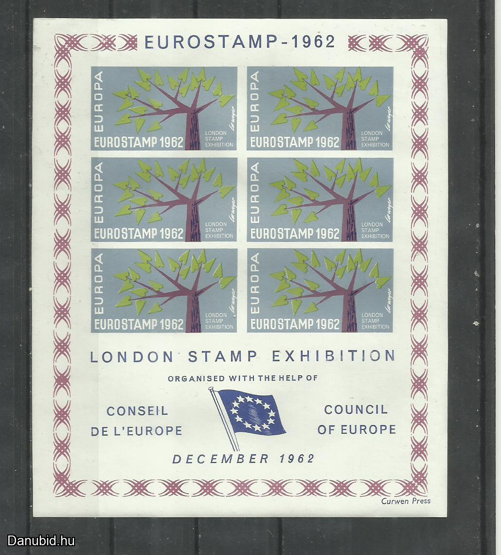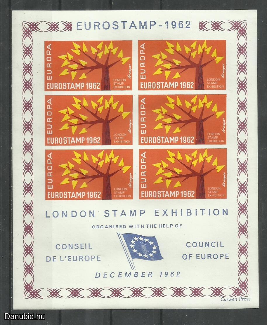 Posta tiszta,MNH/**,GB UK Eurostamp London bélyegkiállítás 1962 emlékív x 2 vágott blokk.