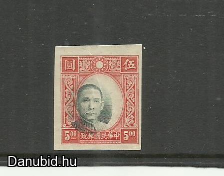 Kínai 1939 Köztársaság $5,00 Chung Hwa Die imperforált - tévnyomat